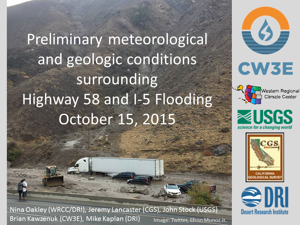 A Preliminary Summary of Highway 58 and I-5 Flooding Event of October 15, 2015