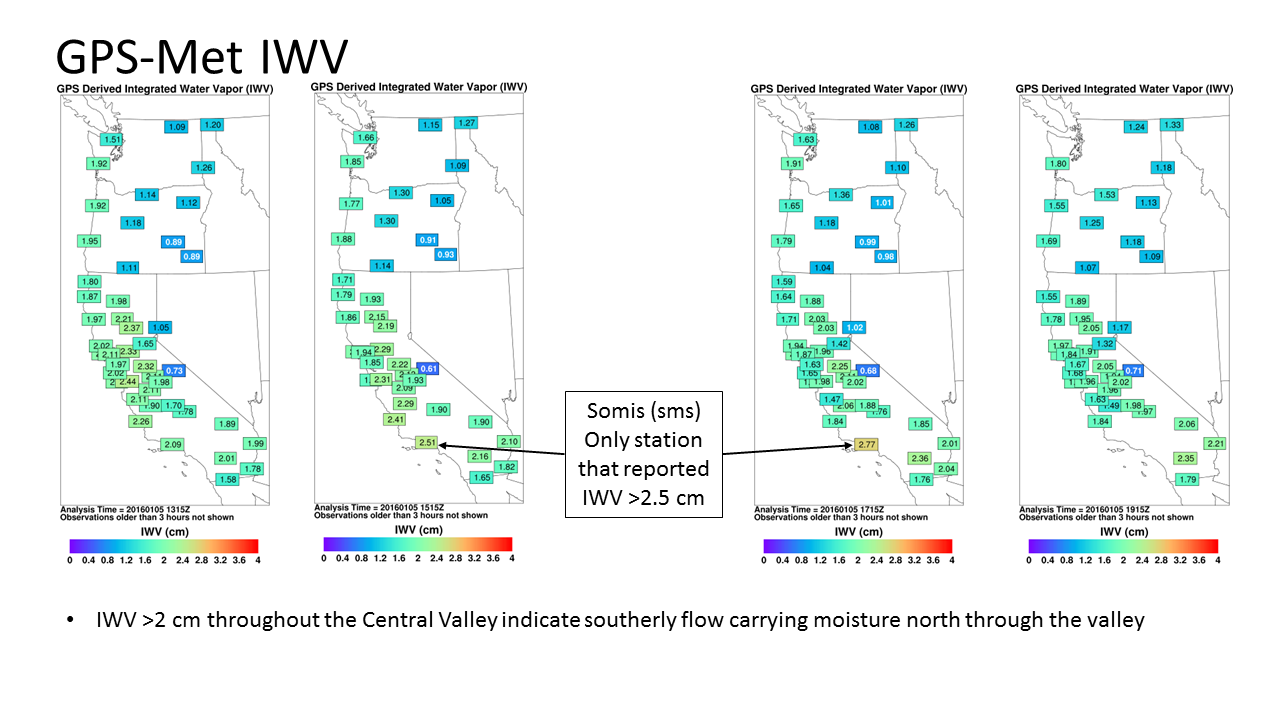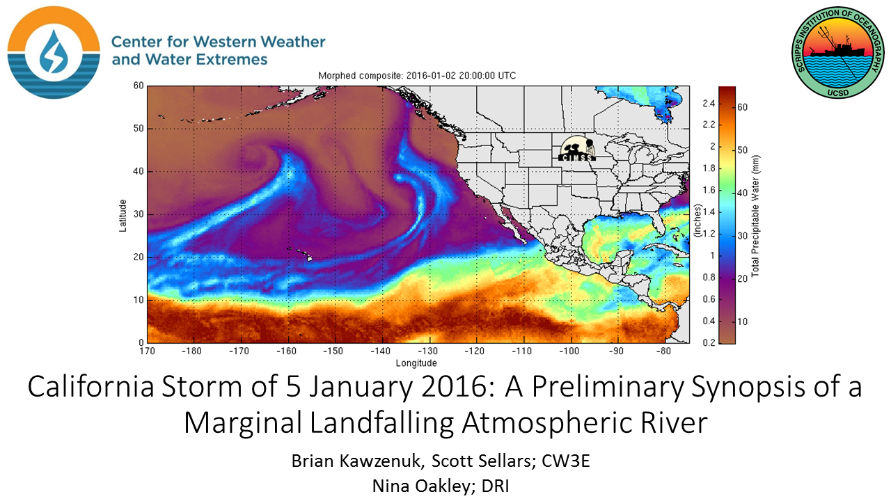 Above is a sequence of SSMI water vapor imagery from 01-05 January 2016 which shows the Atmospheric River propagating towards California and making landfall.