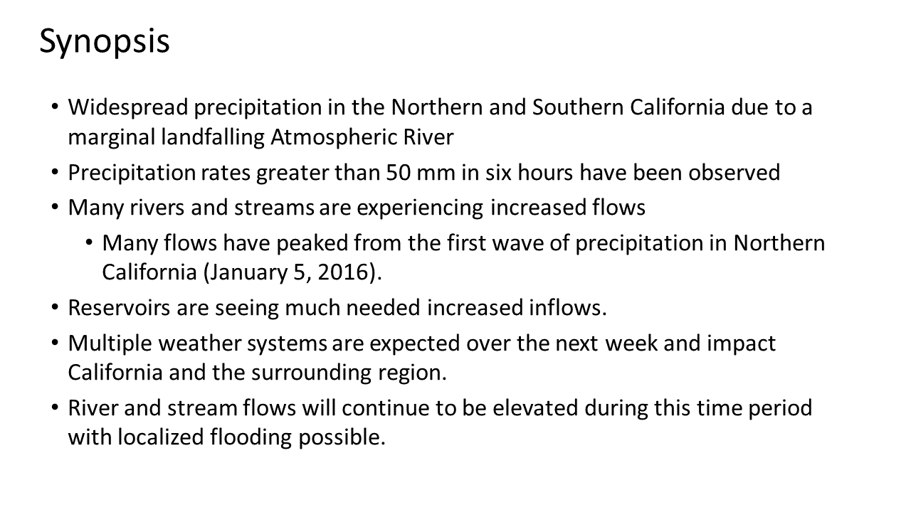 California Storm of 5 January 2016: A Preliminary Synopsis of a Marginal Landfalling Atmospheric River