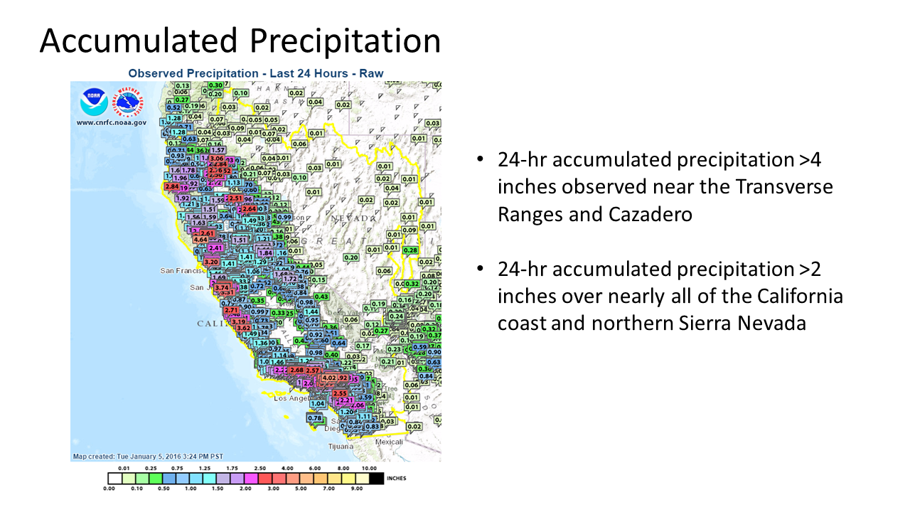 -AR made landfall over southern California at ~0600 UTC 5 January 2016