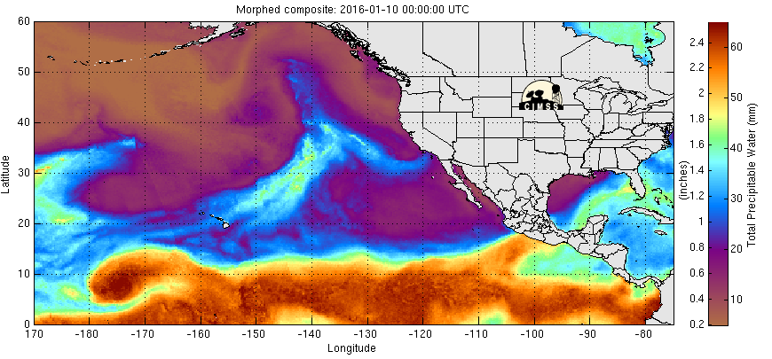 Above is a sequence of SSMI water vapor imagery from 10-13 January 2016 which shows the AR propagating towards northern California and making landfall.