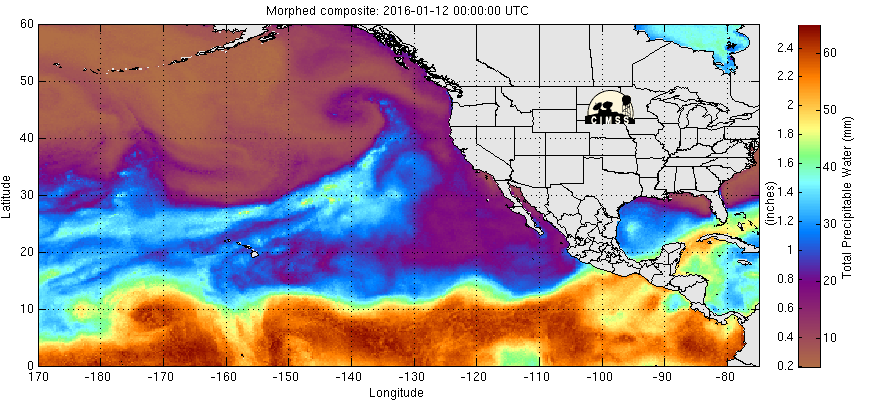 Above is a sequence of SSMI water vapor imagery from 12-15 January 2016 which shows the first AR making landfall and the dissipation of the second AR as it approaches land.