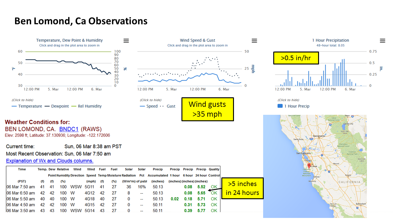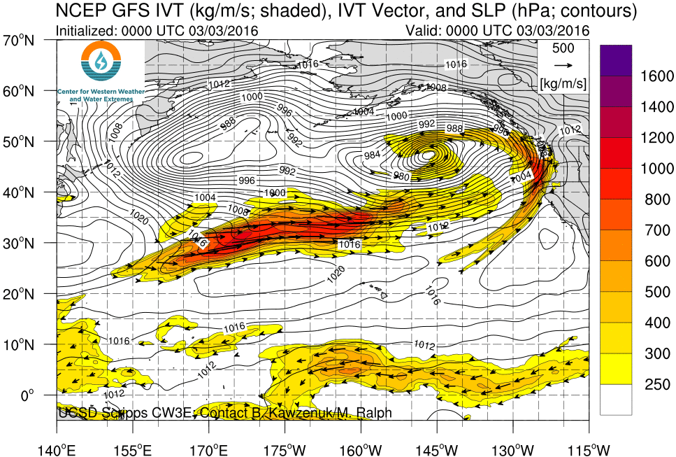 - A moderate strength Atmospheric River made landfall over Northern California during 5-6 March 2016