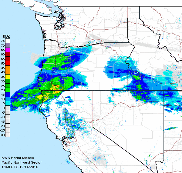 - Precipitation has begun falling in portions of northern CA and southern Oregon where 24-h precipitation accumulations range from 1 to 4.9 in.