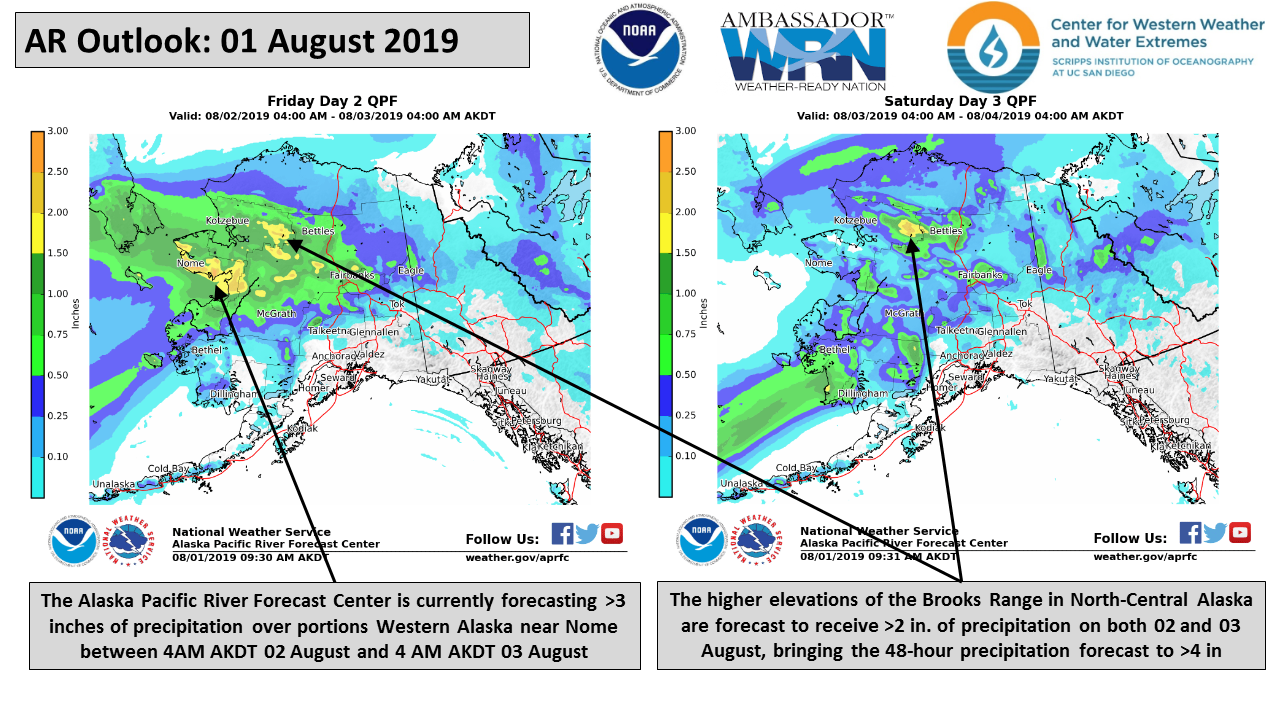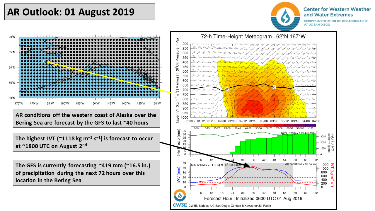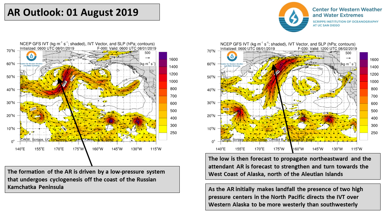 - An AR is forecast to make landfall over western Alaska beginning tomorrow, 02 August 2019, and ending on 06 August 2019