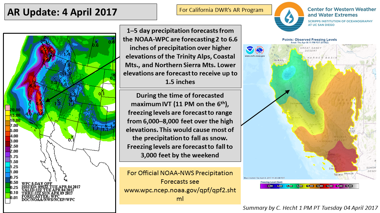 Summary provided by C. Hecht and F.M. Ralph; 1 PM PT Tuesday 04 April 2017