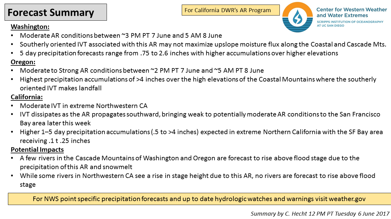CW3E AR Update: 06 June 2017 Outlook