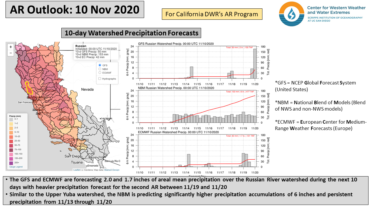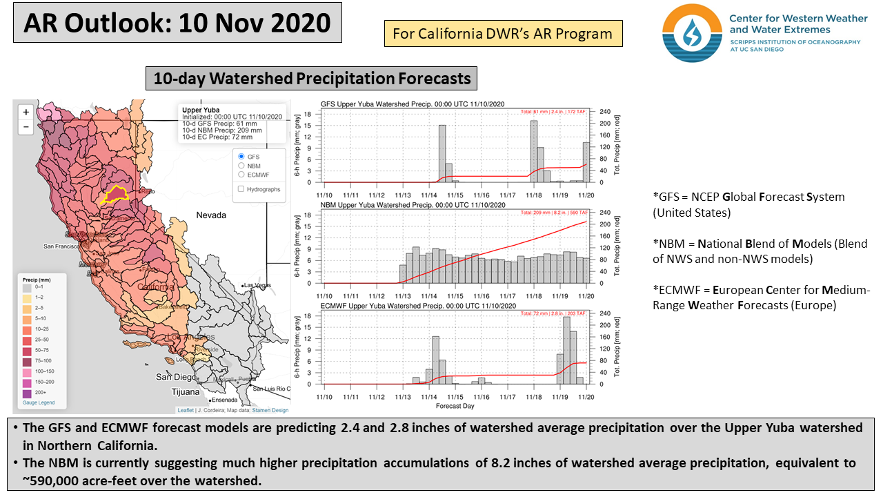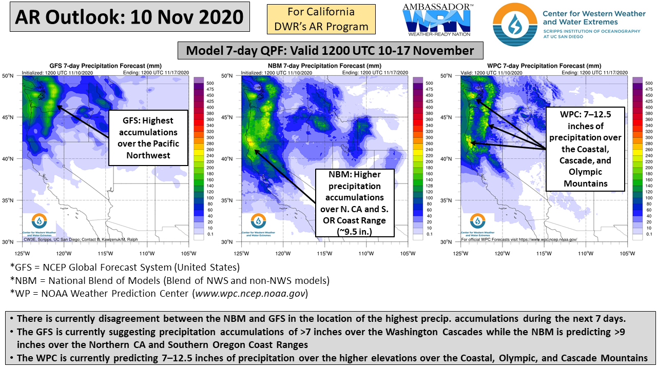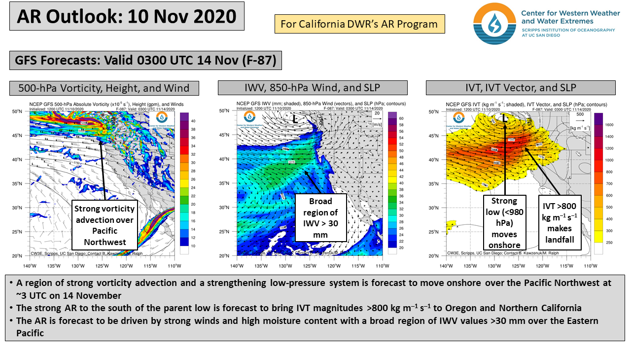 - The second AR is forecast to make landfall over the Pacific Northwest on 15 November but is also associated with large ensemble and model-to-model uncertainty