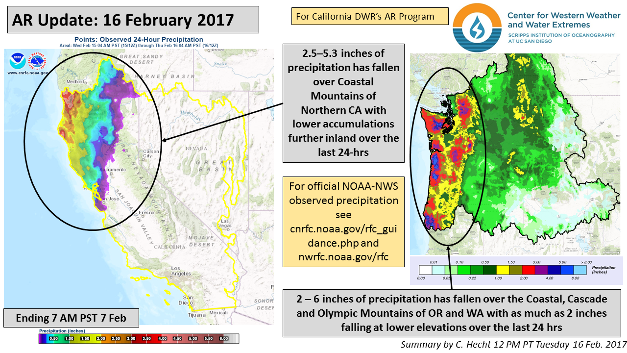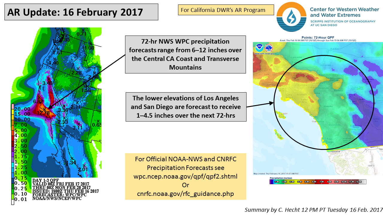 Summary provided by C. Hecht and F.M. Ralph; 1 PM PT Thurs 16 Feb. 2017