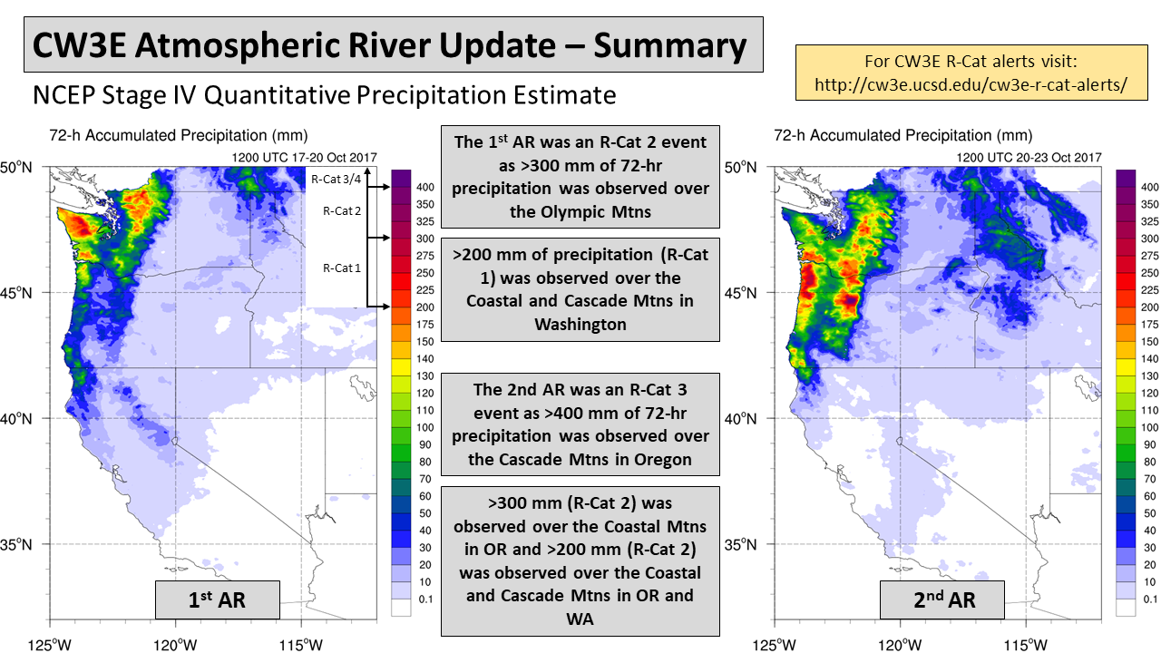 - This AR produced >400 mm of precipitation over the Cascade Mountains in OR in 72 hours (R-Cat 3)