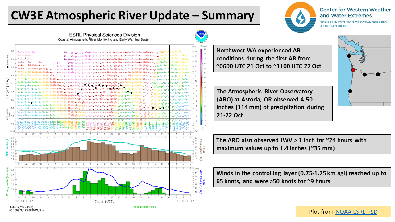 - The second AR made landfall over OR ~0600 UTC 21 October 2017