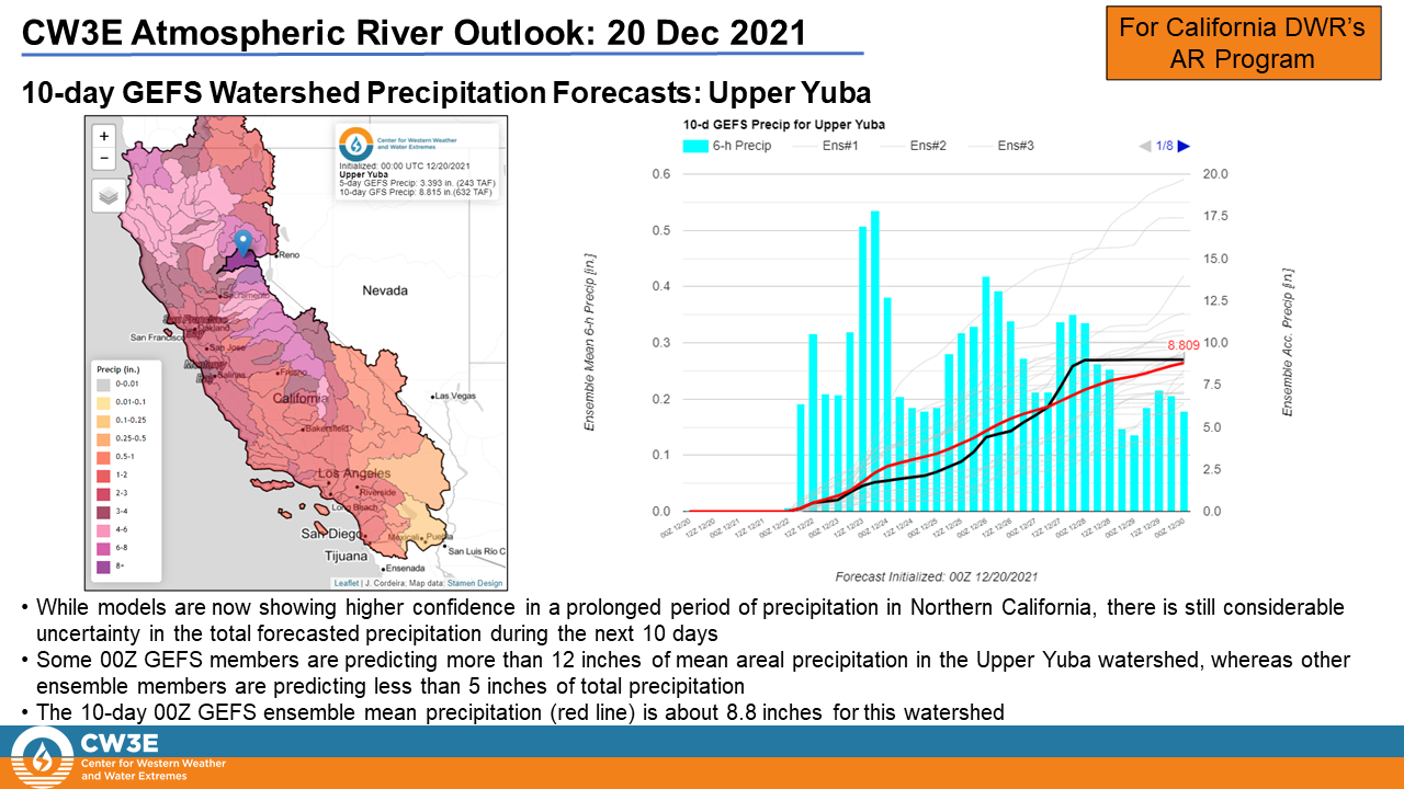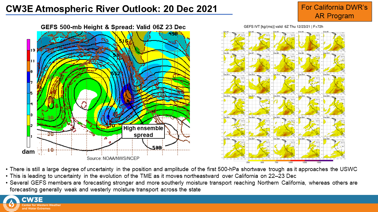 - There is still considerable uncertainty in the timing, magnitude, and duration of AR conditions and precipitation