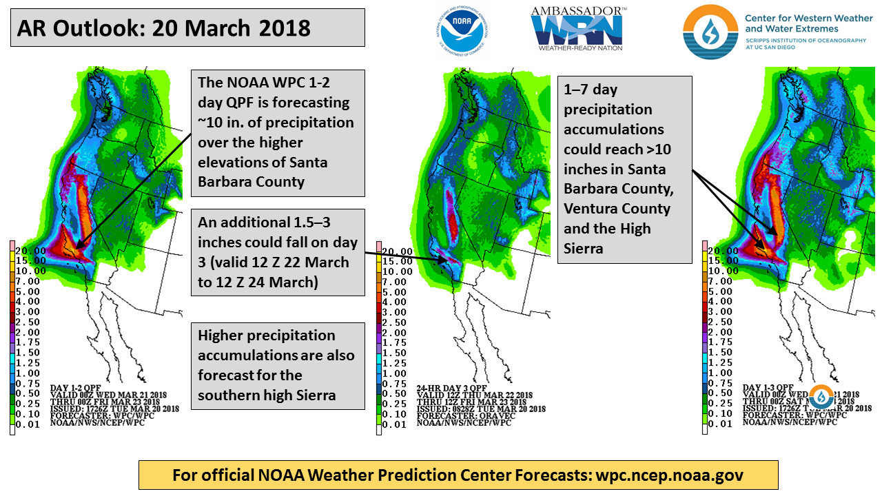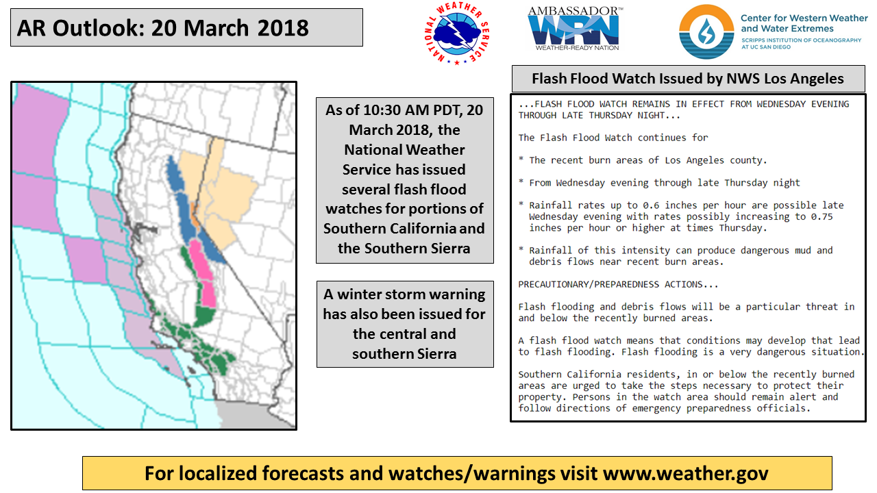 Summary provided by C. Hecht, F.M. Ralph, J. Rutz, and B. Kawzenuk; 1 PM PT Tuesday 20 March 2018