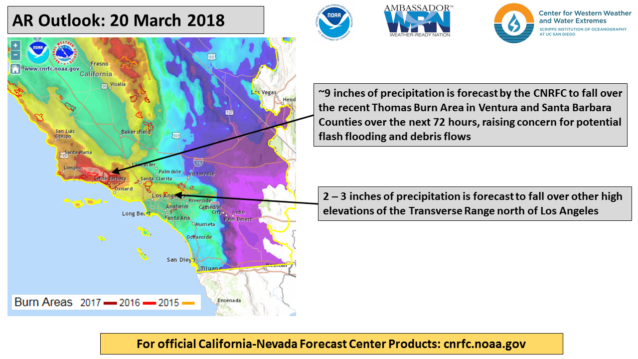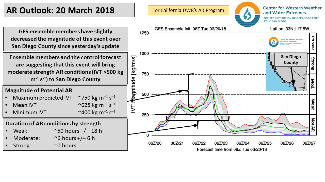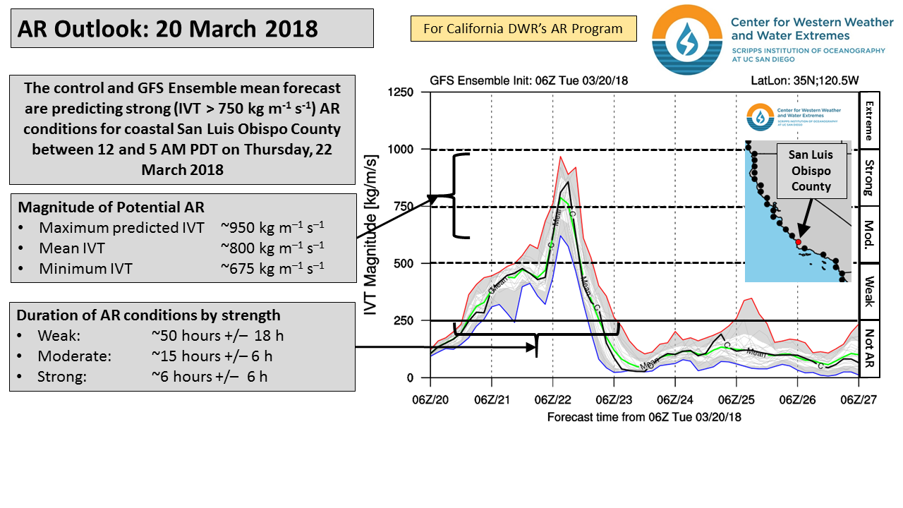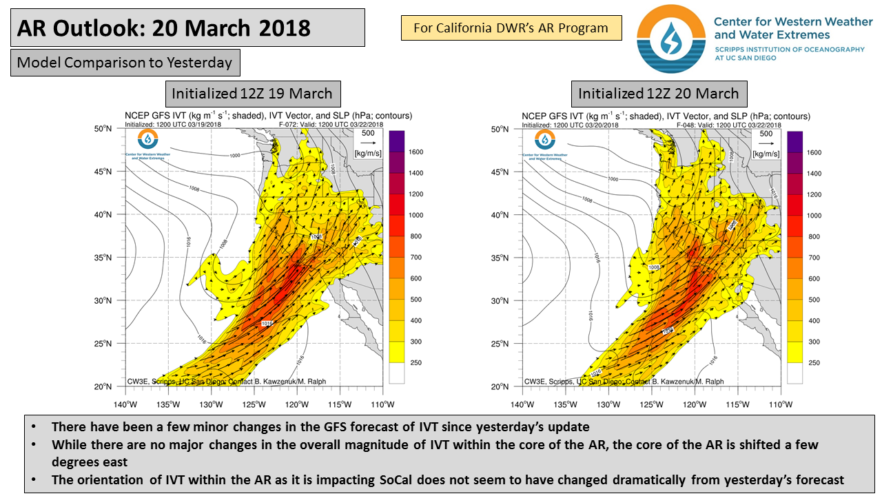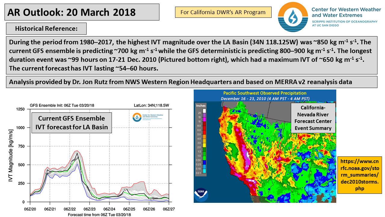 - AR conditions are forecast to peak over portions of SoCal between Midnight and 11 AM PDT on Thursday, 22 March 2018