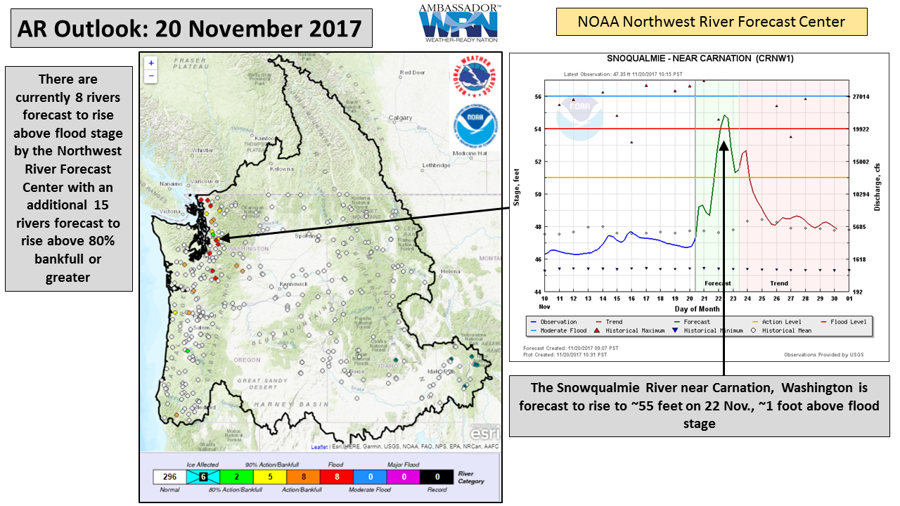 - Several rivers in Washington are currently forecast to rise above flood stage