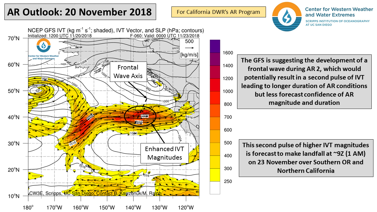 - There is potential for development of a mesoscale frontal wave associated with AR 2, which could lead to stalling of the AR