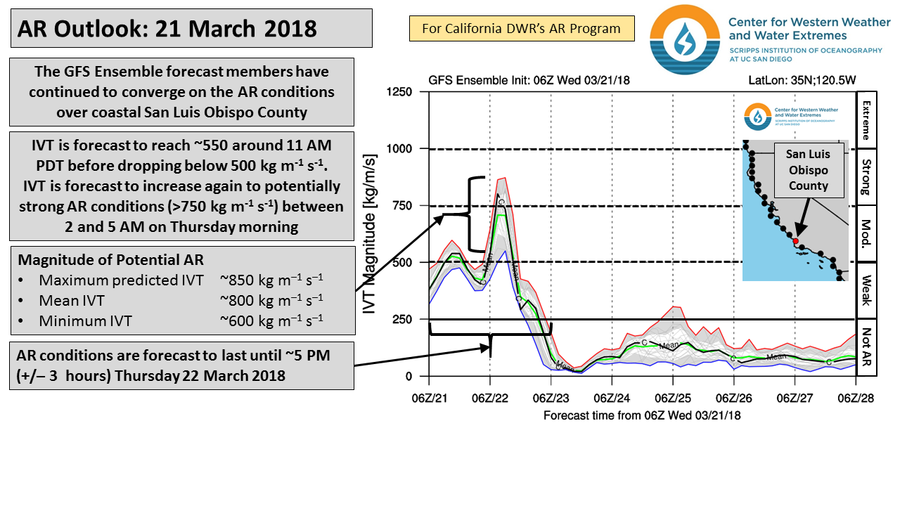 - GFS Ensemble members have continued to converge on coastal IVT forecast for the remainder of the AR