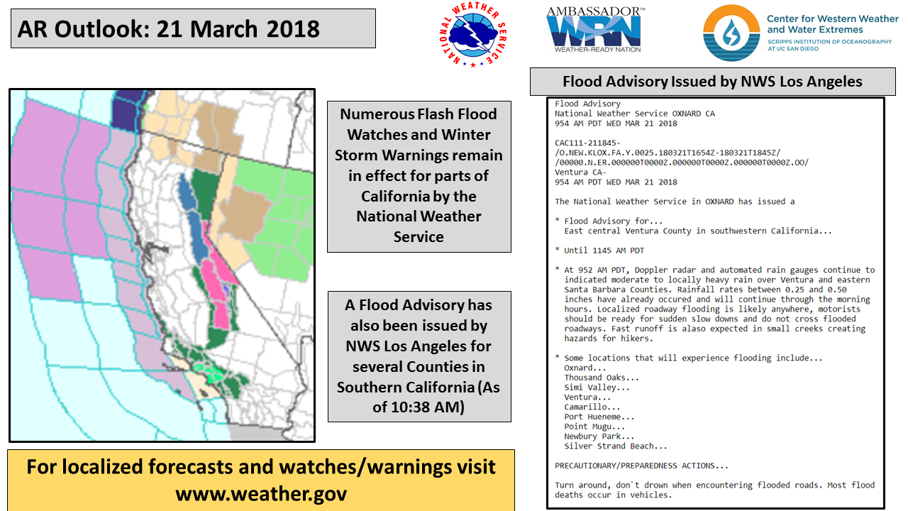 Summary provided by C. Hecht, F.M. Ralph, and B. Kawzenuk; 1 PM PT Wednesday 21 March 2018