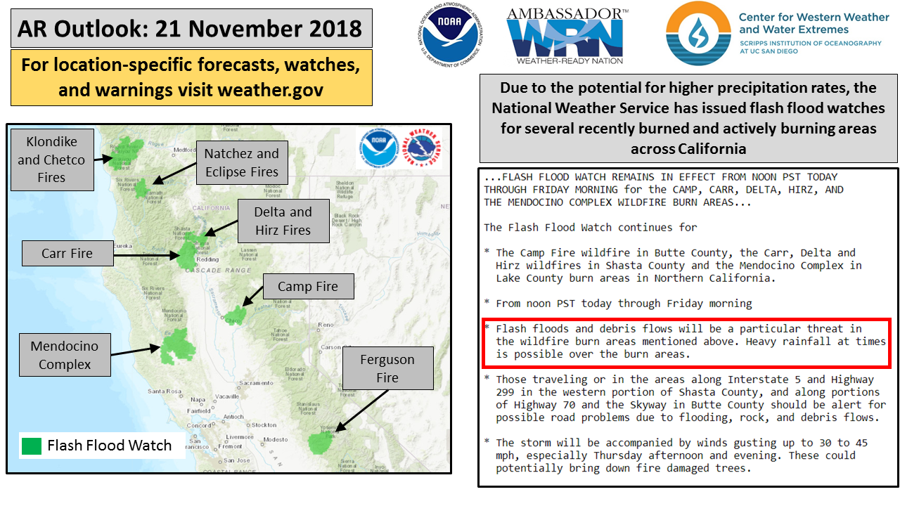 - The National Weather Service has issued numerous Flash Flood watches across the Northern CA and Southern OR