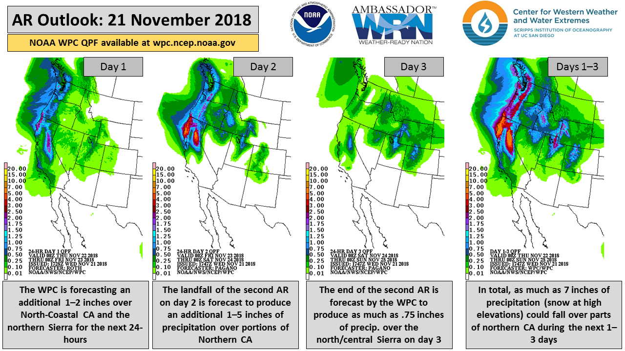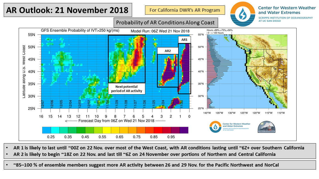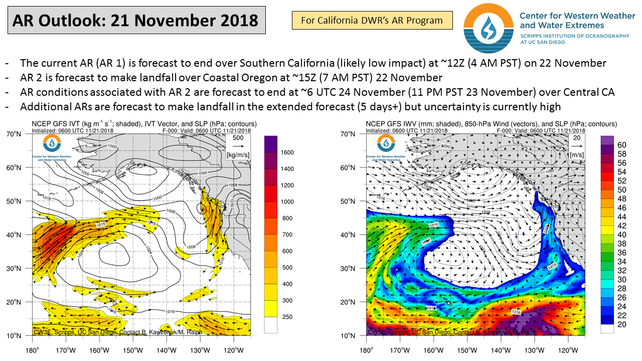 - The current AR (AR 1) is forecast to end over Southern California at ~12Z (4 AM PST) on 22 November