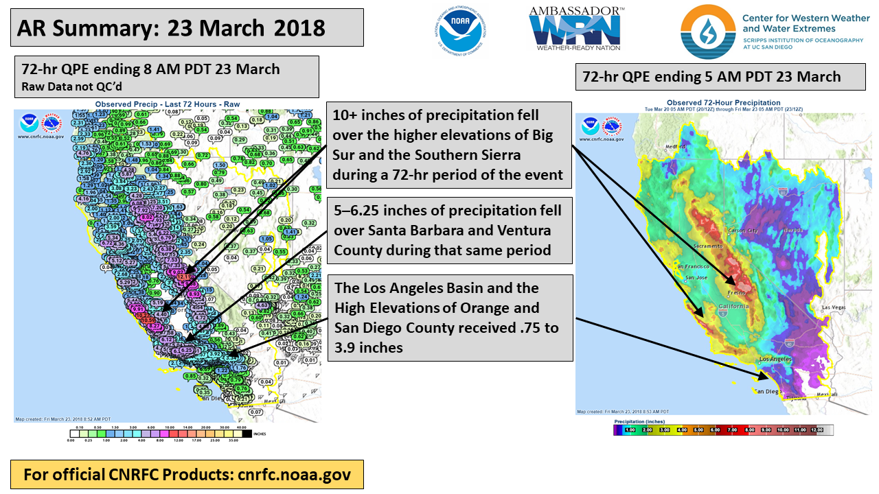 Summary provided by C. Hecht, B. Kawzenuk, and F.M. Ralph; 3 PM PT Friday 23 March 2018