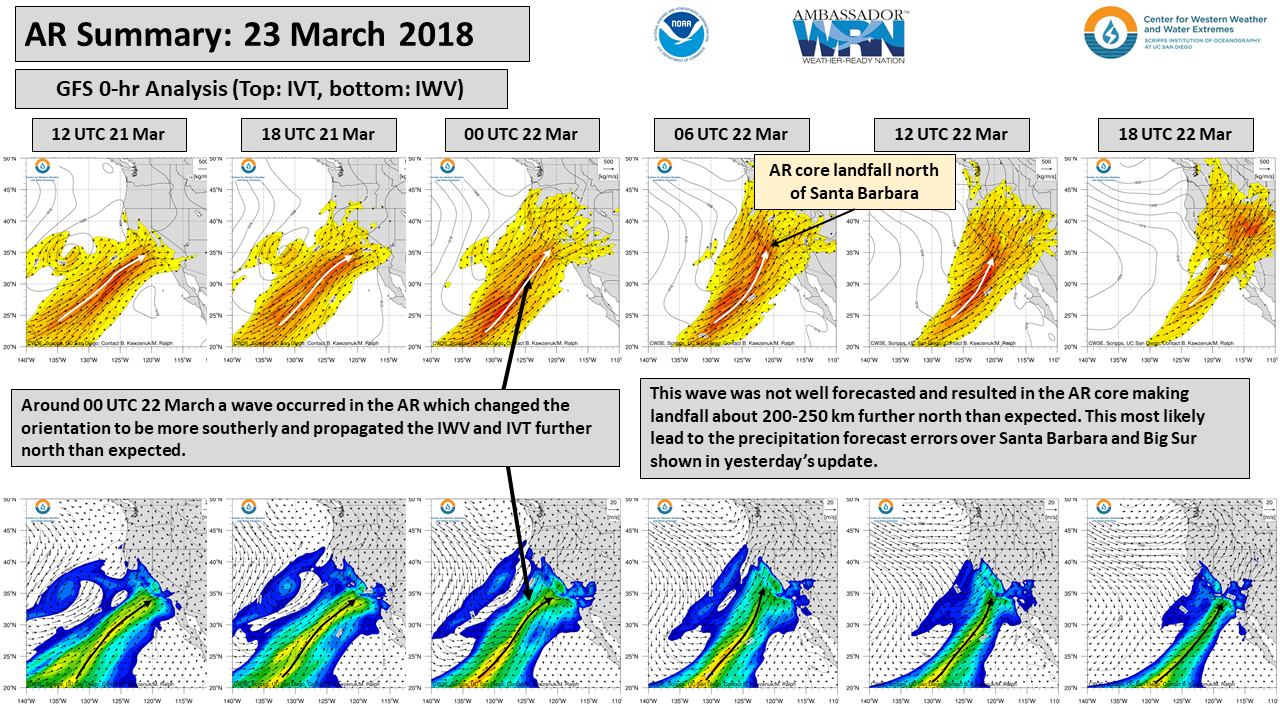 - The atmospheric river made initial landfall over Big Sur around 1800 UTC Wednesday, 20 March 2018