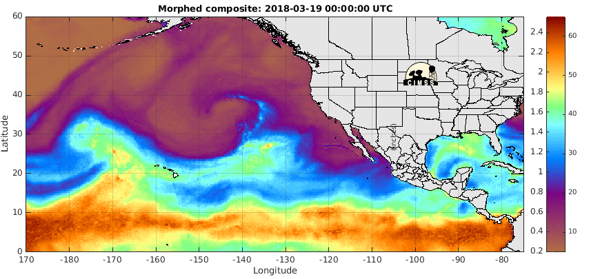 Click IVT or IWV image to see loop of 0-48 hour GFS forecast Valid 1200 UTC 22 March – 1200 UTC 24 March 2018 |
