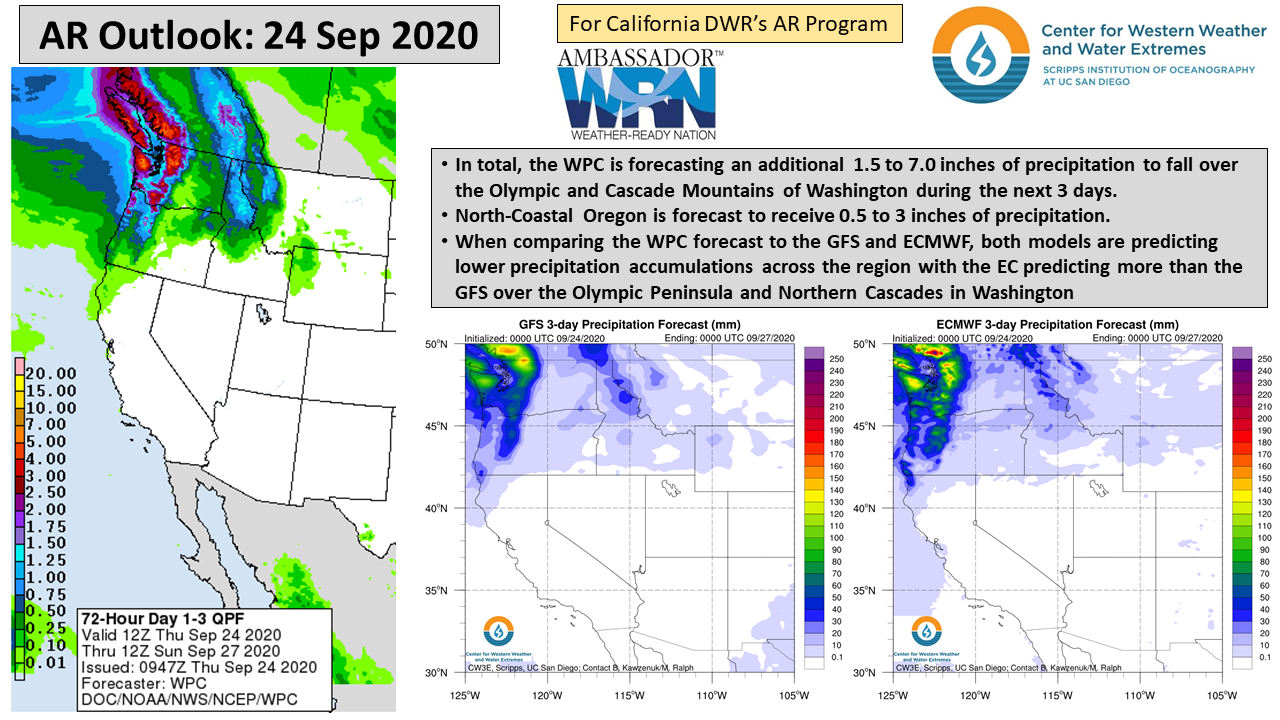 - As an AR is currently impacting the Pacific Northwest, two additional ARs are forecast to bring precipitation to the region and British Columbia