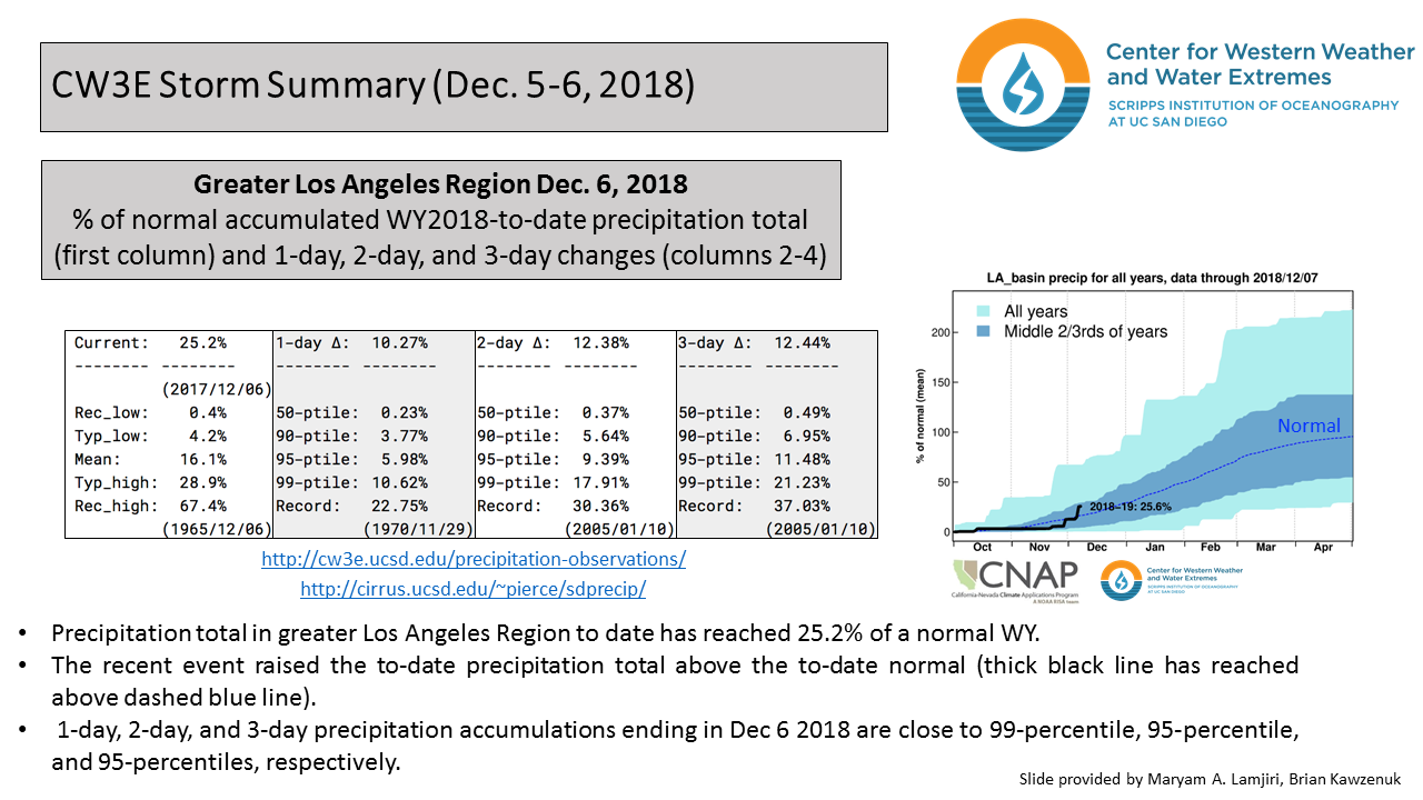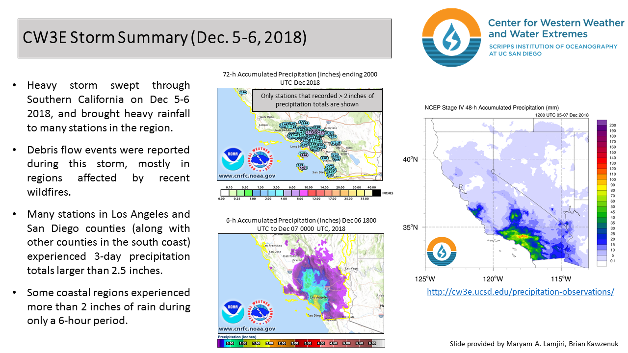 Summary of Atmospheric River that impacted Southern California on 5-7 Dec. 2018