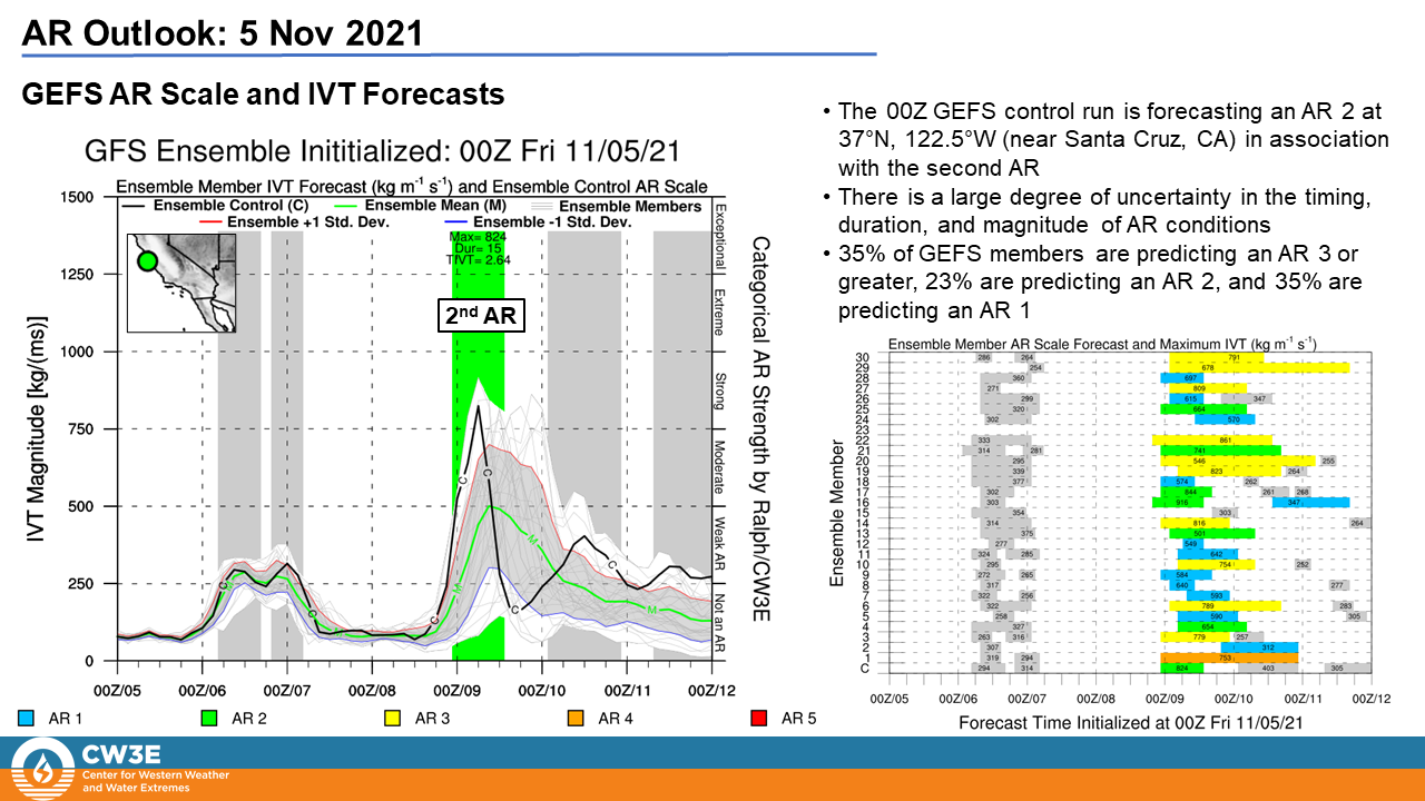 - The 00Z GEFS control run is forecasting an AR 3 near Point Reyes, CA, and AR 1/AR 2 conditions elsewhere along the coast in Central and Northern California