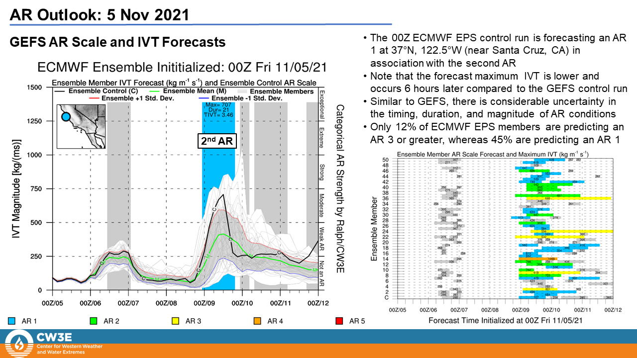 - The 00Z ECMWF EPS control run is forecasting an AR 2 in the San Francisco Bay Area and AR 1 conditions elsewhere in Central and Northern California