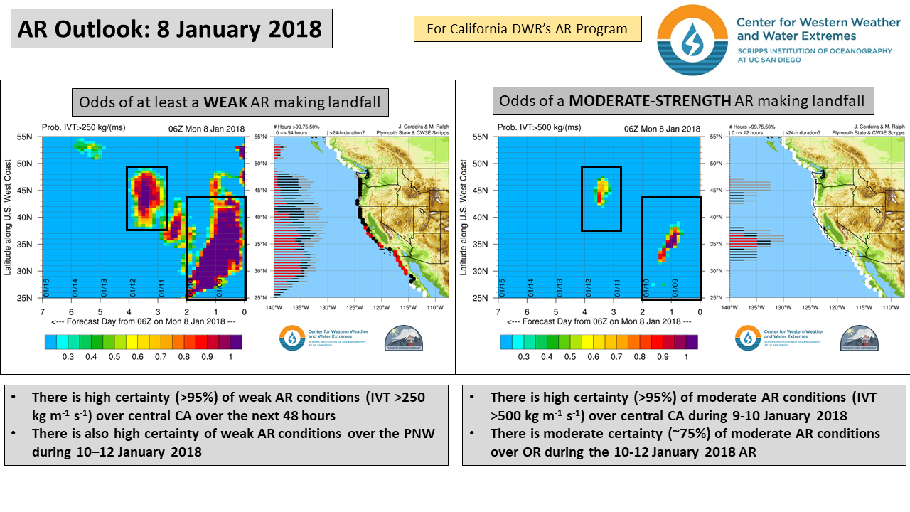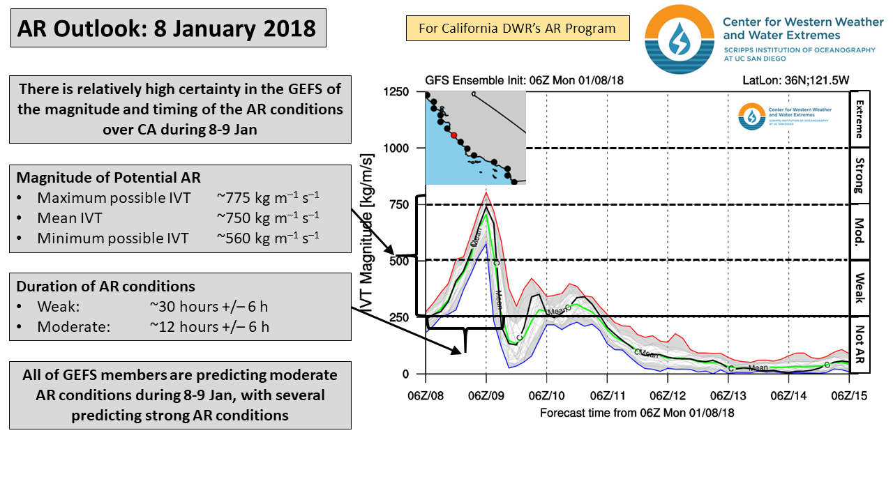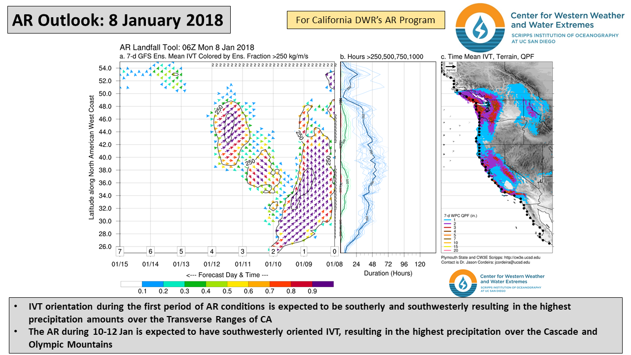 Summary provided by B. Kawzenuk, J. Kalansky, and F.M. Ralph; 11 AM PT Monday 8 January 2018