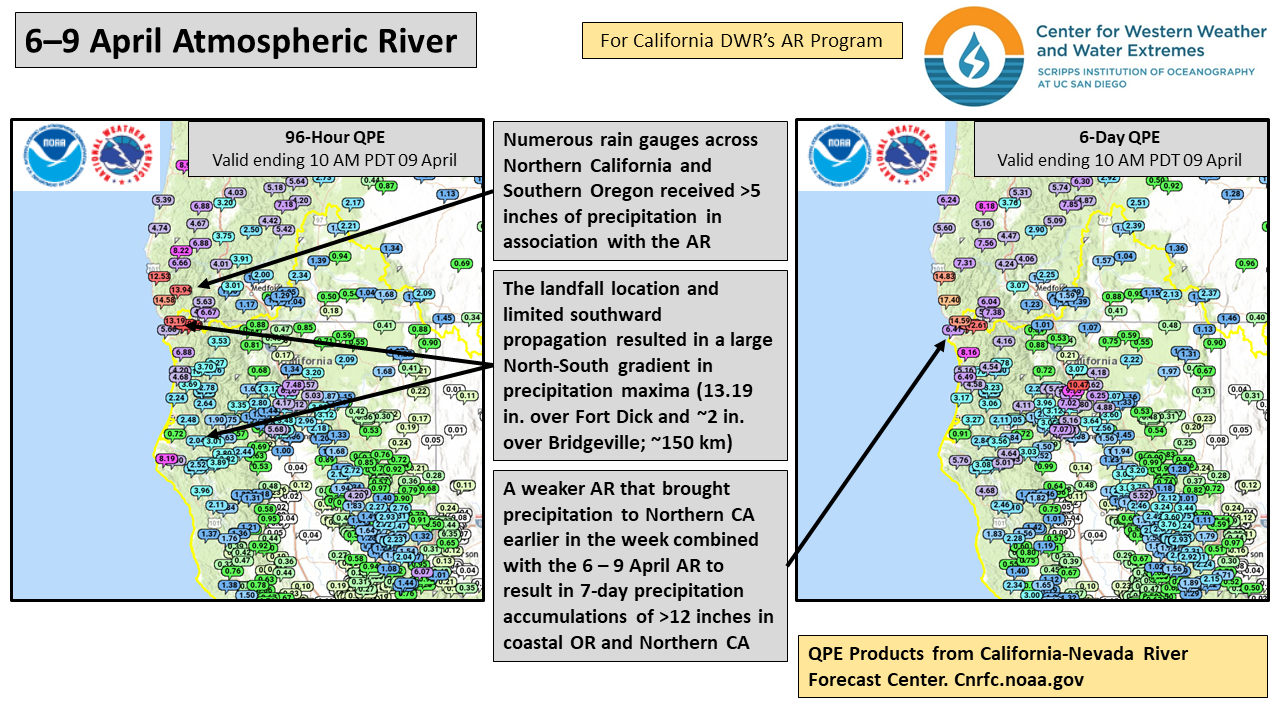 Summary of the atmospheric river that impacted Oregon and Northern California between 6 and 9 April 2019