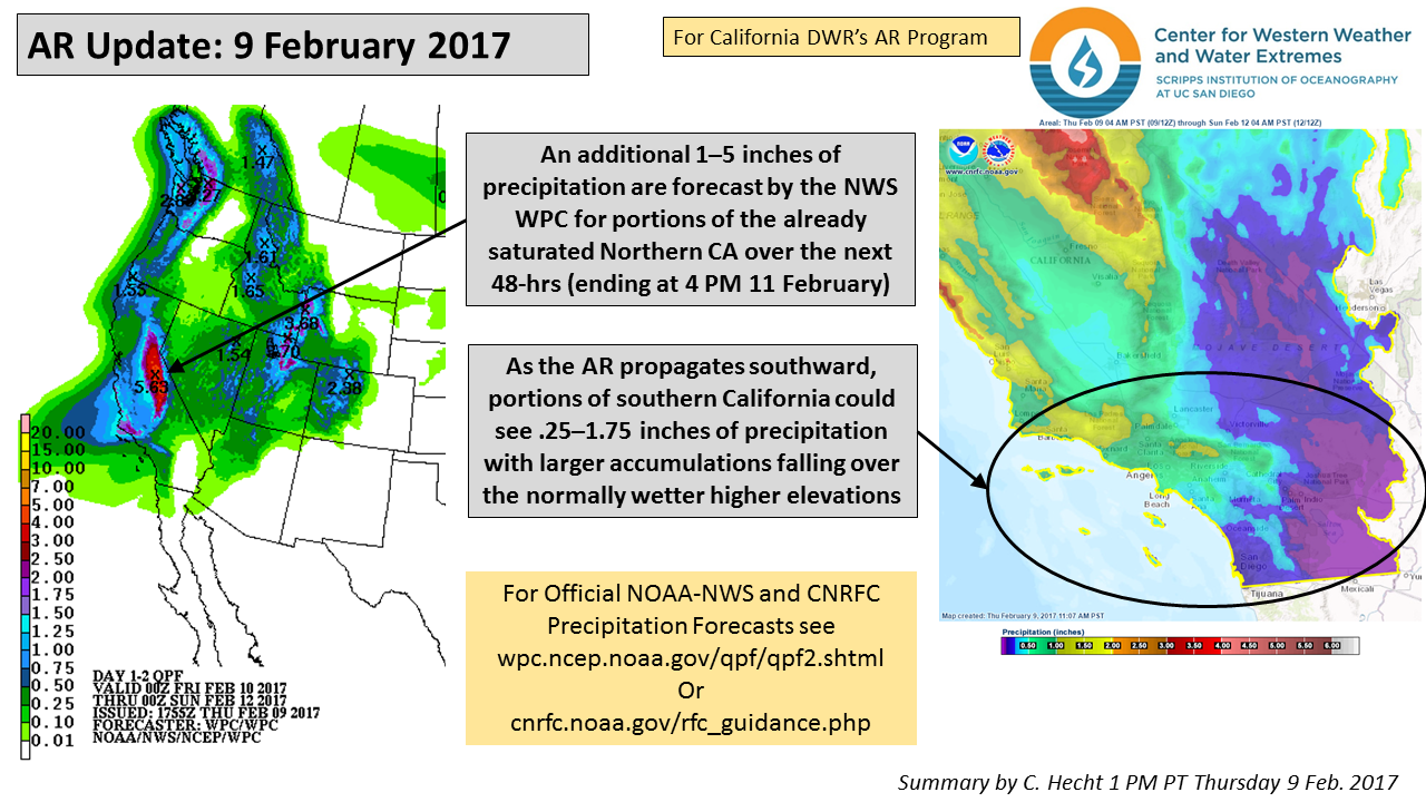Summary provided by C. Hecht and F.M. Ralph; 1 PM PT Thurs 09 Feb. 2017