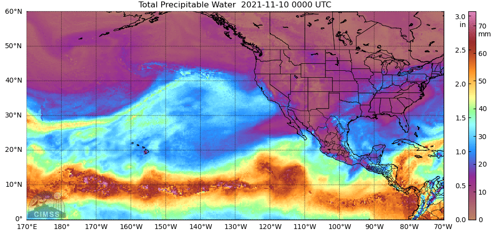 Click images to see loops of GFS IVT/IWV analyses Valid 0000 UTC 10 November – 0000 UTC 16 November 2021 |