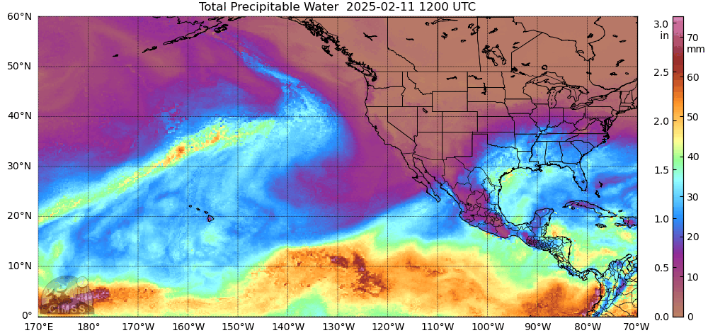 Click images to see loops of GFS IVT/IWV analyses Valid 1800 UTC 11 February – 1800 UTC 14 February 2025 |