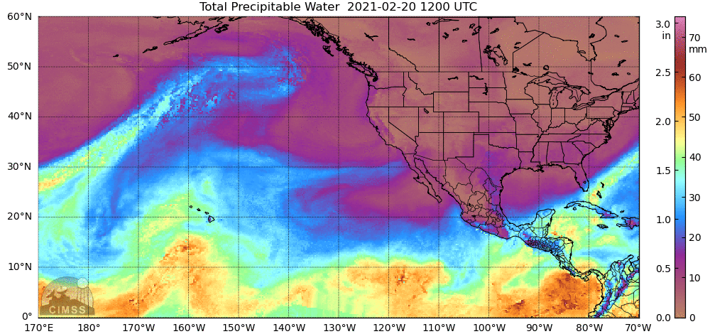 Click images to see loops of GFS IVT/IWV analyses Valid 1200 UTC 20 February – 1200 UTC 23 February |