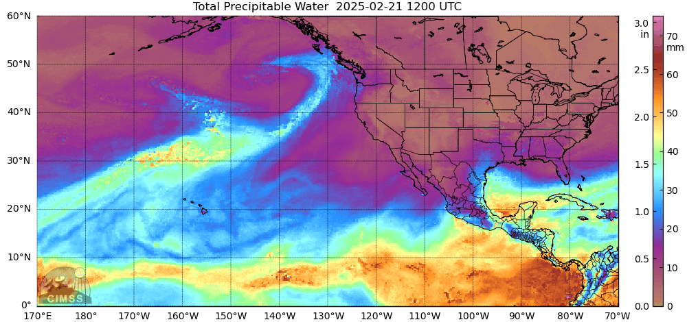 Click images to see loops of GFS IVT/IWV analyses Valid 1200 UTC 21 February – 1200 UTC 25 February 2025 |