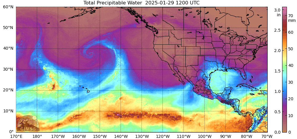 Click images to see loops of GFS IVT/IWV analyses Valid 1200 UTC 29 January – 1200 UTC 5 February 2025 |