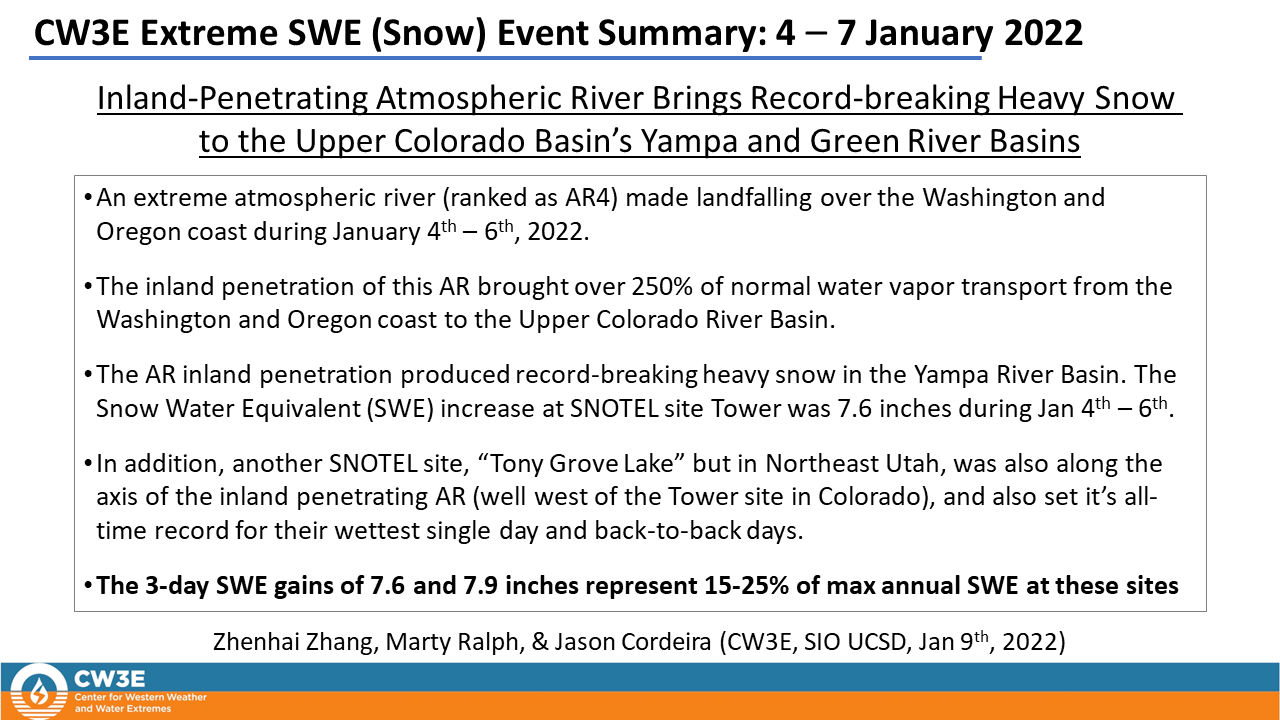 CW3E Extreme SWE (Snow) Event Summary: 4 – 7 January 2022