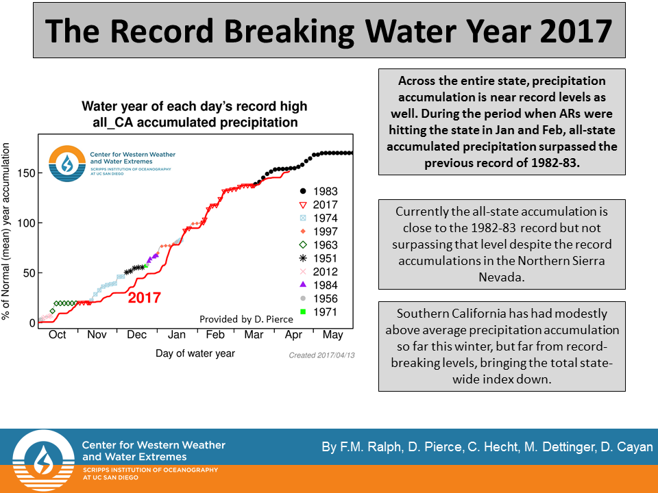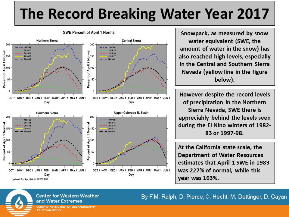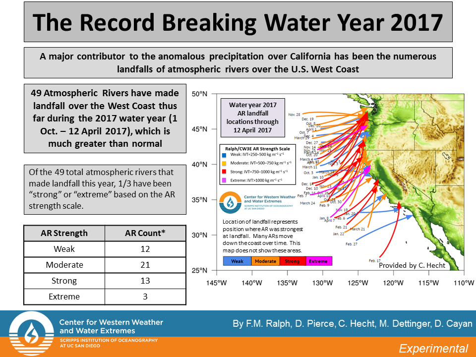 Summary provided by F.M. Ralph, D. Pierce, C. Hecht, M. Dettinger, and D. Cayan; 2 PM PT Thursday 13 April 2017