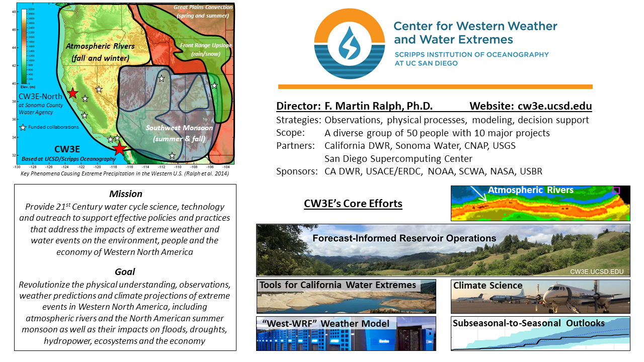 - Demonstrate the potential of breakthrough advances in atmospheric river and drought research to inform water management and flood control decisions to reduce flood damages and increase water-supply and hydropower availability and reliability.